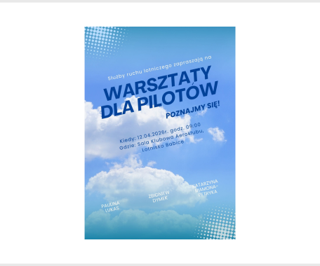 Jak wygląda współpraca pilot–ATC z perspektywy kontrolera ruchu lotniczego? Zapraszamy na spotkanie z przedstawicielami Polskiej Agencji Żeglugi Powietrznej (PAŻP), podczas którego omówimy praktyczne aspekty komunikacji w przestrzeni powietrznej oraz dobre praktyki zwiększające bezpieczeństwo operacyjne. W programie spotkania: 1. Kulisy pracy kontrolerów ruchu lotniczego i realia operacyjne ATC. 2. Dobre praktyki komunikacji pilot–ATC. 3. Najczęstsze wyzwania we współpracy