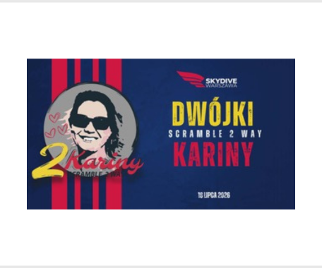 Ruszyły zapisy na kolejną edycję zawodów „Dwójki Kariny”! Zapraszamy do udziału w zawodach w formule 2-way FS, otwartej zarówno dla mniej doświadczonych skoczków, jak i tych z większym stażem. To świetna okazja, aby spróbować swoich sił w lataniu płasko i poczuć sportowe emocje. Zawody upamiętniają Karinę Laszuk – instruktorkę i pasjonatkę spadochroniarstwa, która z ogromnym zaangażowaniem rozwijała środowisko FS w Aeroklubie